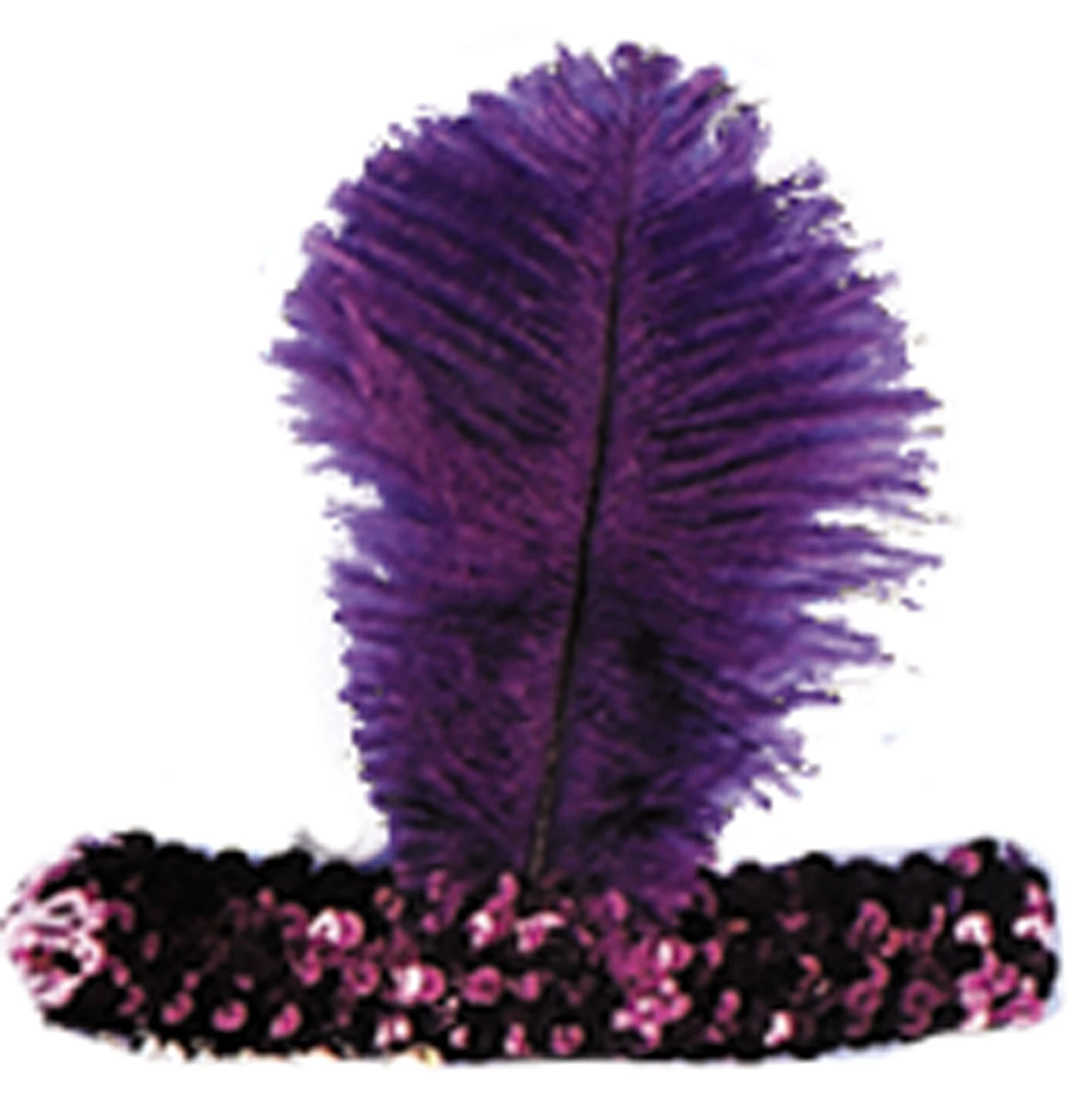 Stretch sequin headband with single feather. The ideal 20s, headpiece.