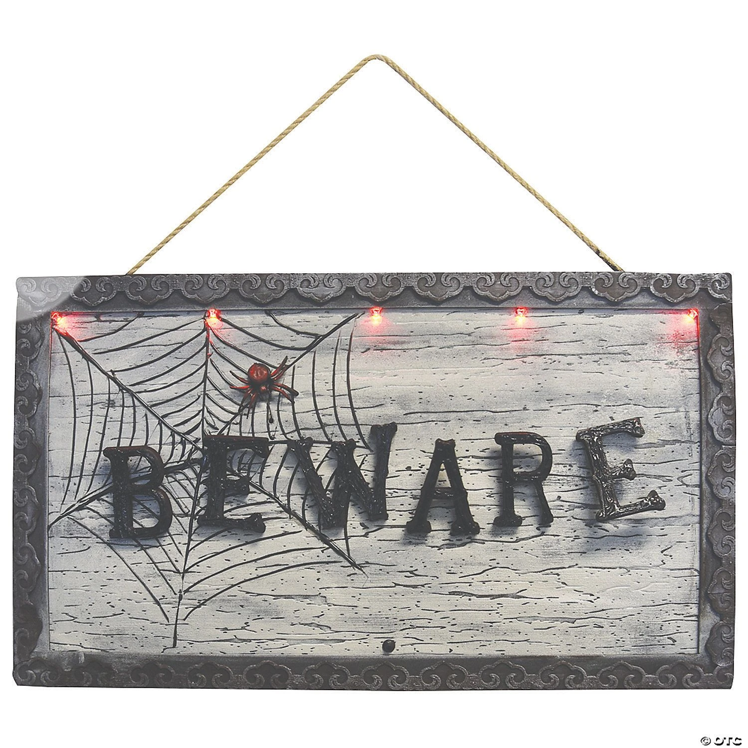Welcome party guests into your home haunt with this spooky hanging sign that has lights and sounds. You’ve been warned – this scary wall décor will add a chilling touch to your room. This light up sign will be the perfect addition to your Halloween home
