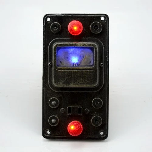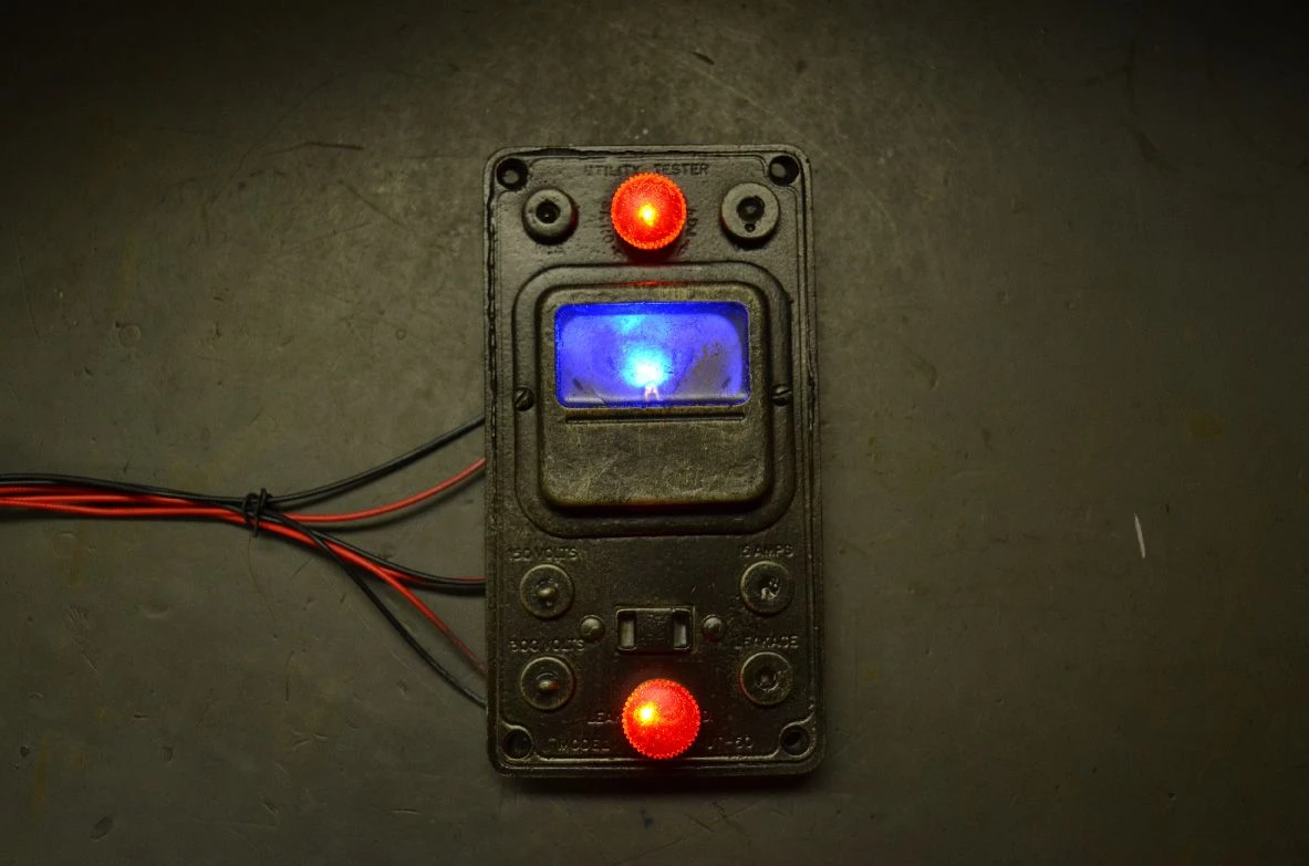 We have several products that light up: gauges, electrical panels, vacuum tubes, etc. None utilize real glass but instead a clear resin, so there’s no shatter hazard. All are illuminated with 12-volt DC LEDs and can be run on 9 15-volt DC for safe and efficient use. You can even use a 9-volt battery for several days in a row of operation. LED lights last a long time, 50,000 hours is expected, though many go much longer than that.