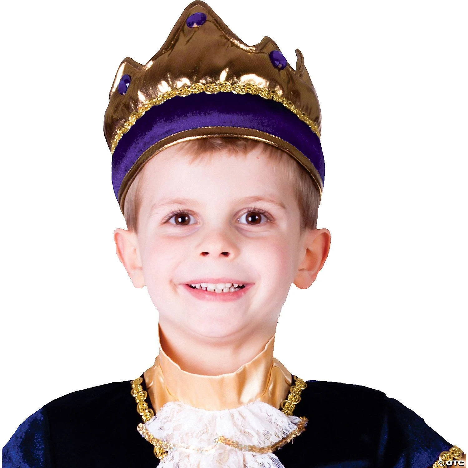 Give your children the royal treatment! Childs soft fabric crown is made of velvet and lame with gold braid and jewel accents. One size fits all. Comes in three colors: red purple and blue! Purple crown.