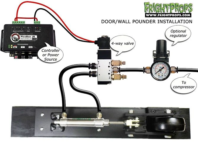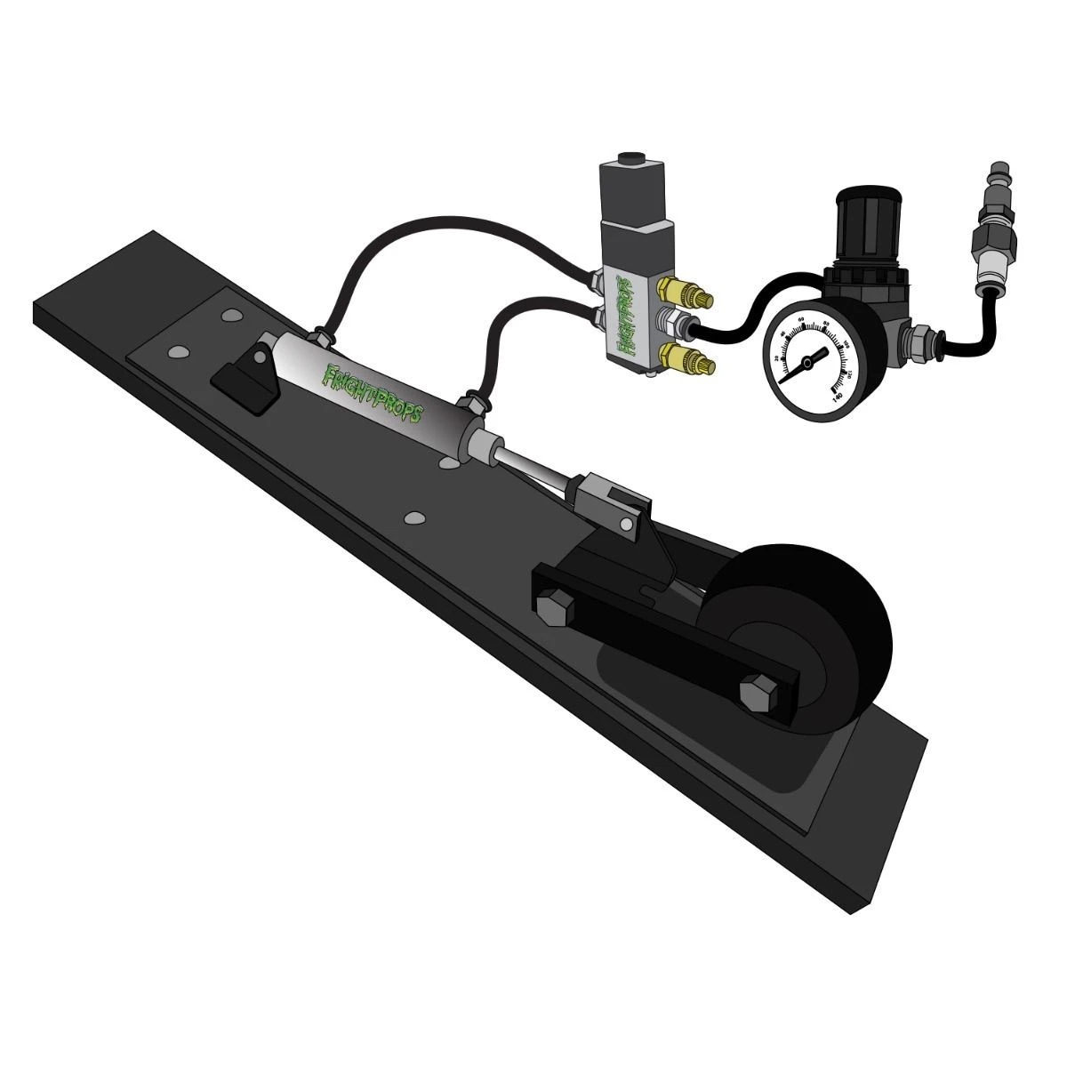 All of our mechs come with cylinders installed, 12vDC solenoids with fittings (including speed controls), airline, regulators and Quick Connect fittings for your compressor! We offer a choice of controller options and triggers to suite any prop build. With over two decades of experience building prop mechanisms you can trust our time-tested quality to be the rock solid basis for your prop build.