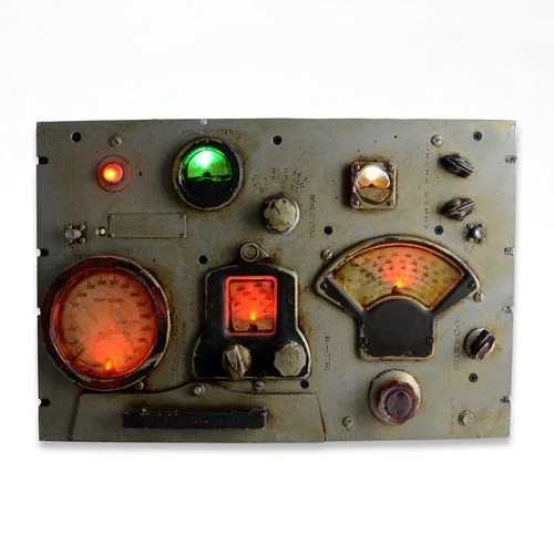 We have several products that light up: gauges, electrical panels, vacuum tubes, etc. None utilize real glass but instead a clear resin, so there’s no shatter hazard. All are illuminated with 12-volt DC LEDs and can be run on 9 15-volt DC for safe and efficient use. You can even use a 9-volt battery for several days in a row of operation. LED lights last a long time, 50,000 hours is expected, though many go much longer than that.