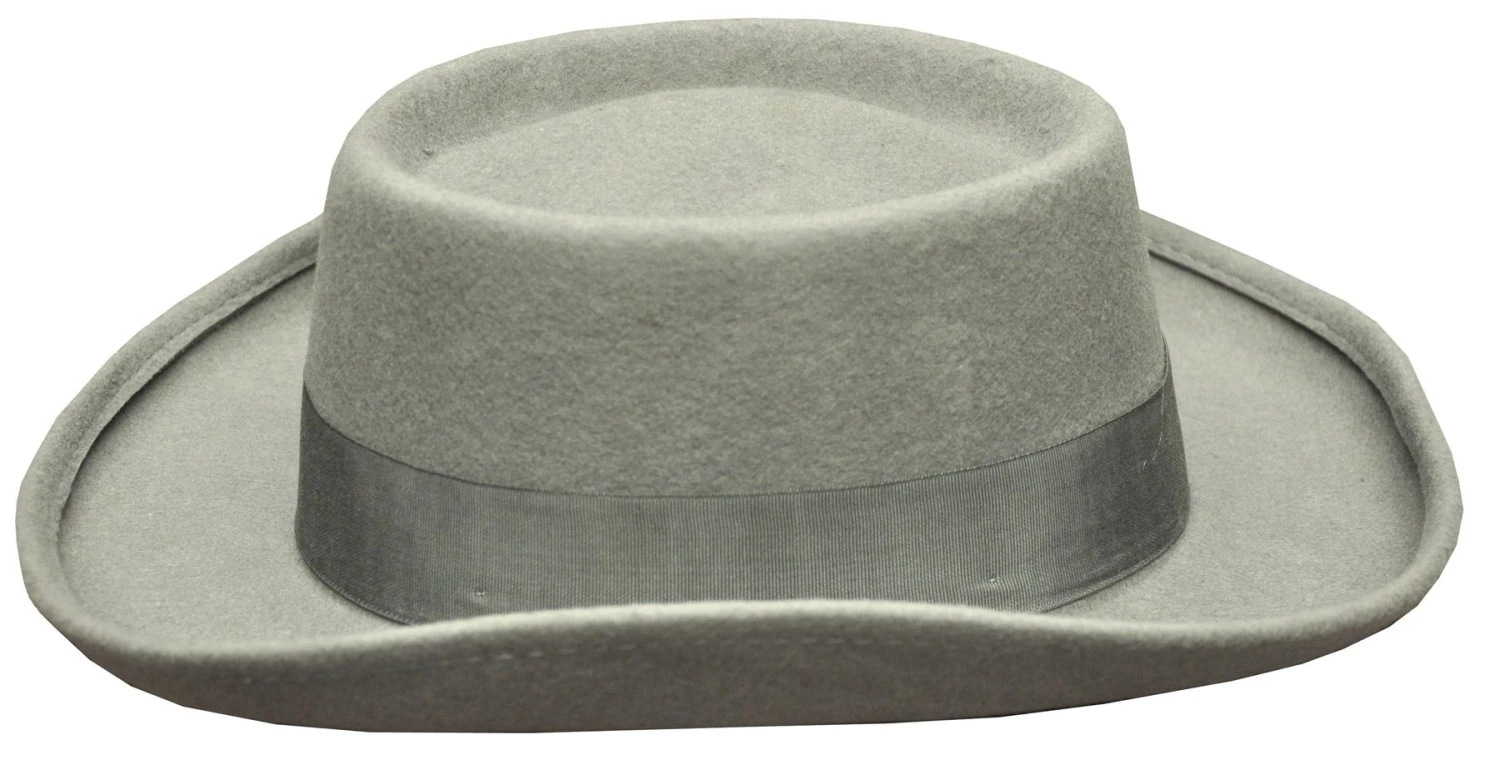 Top quality wool hat for the southern gentleman. Brim 3 inches, height 4 1/2 inches.