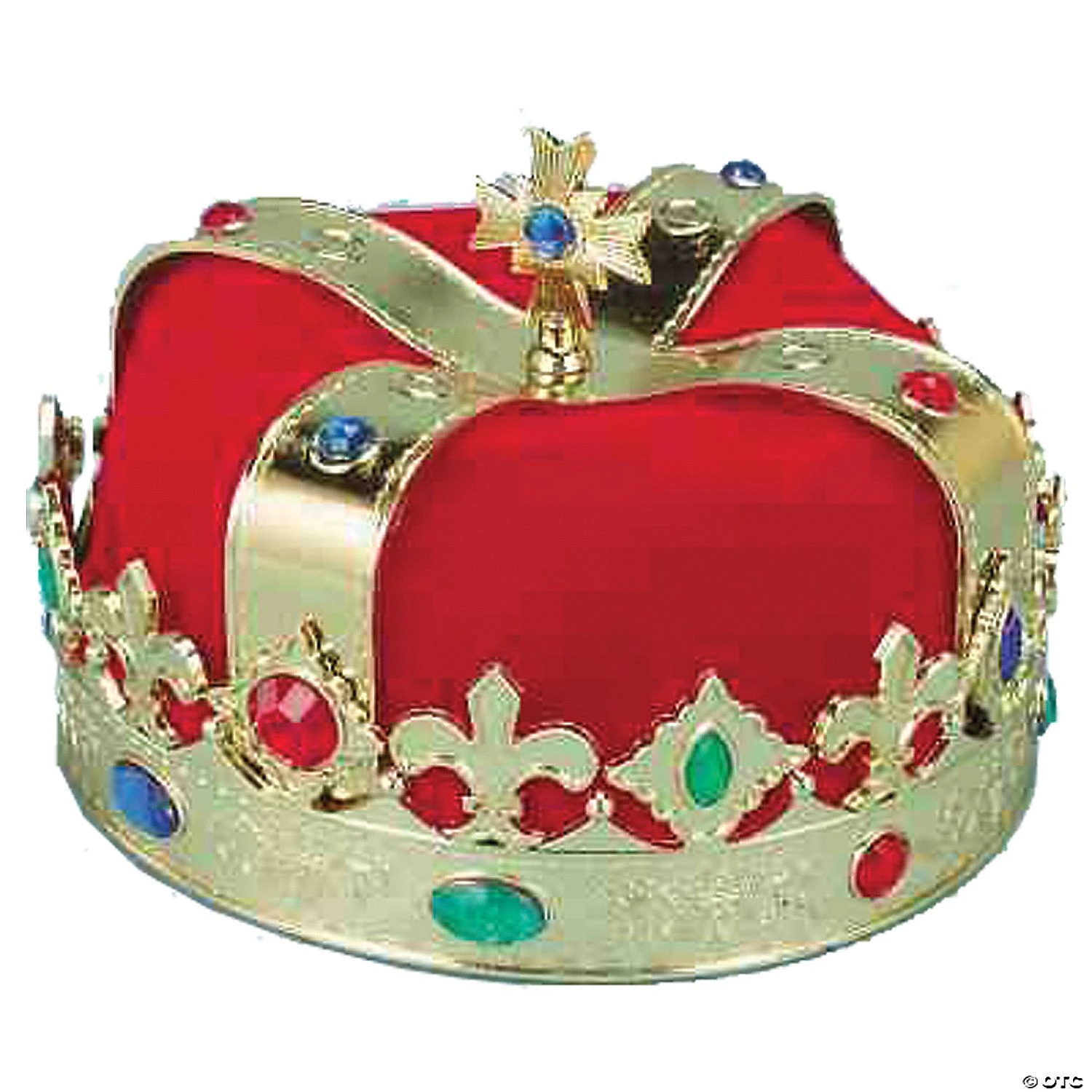 An accessory fit for a king! Golden crown with multi-colored jewels and a red under turban for a regal look. One size fits most.