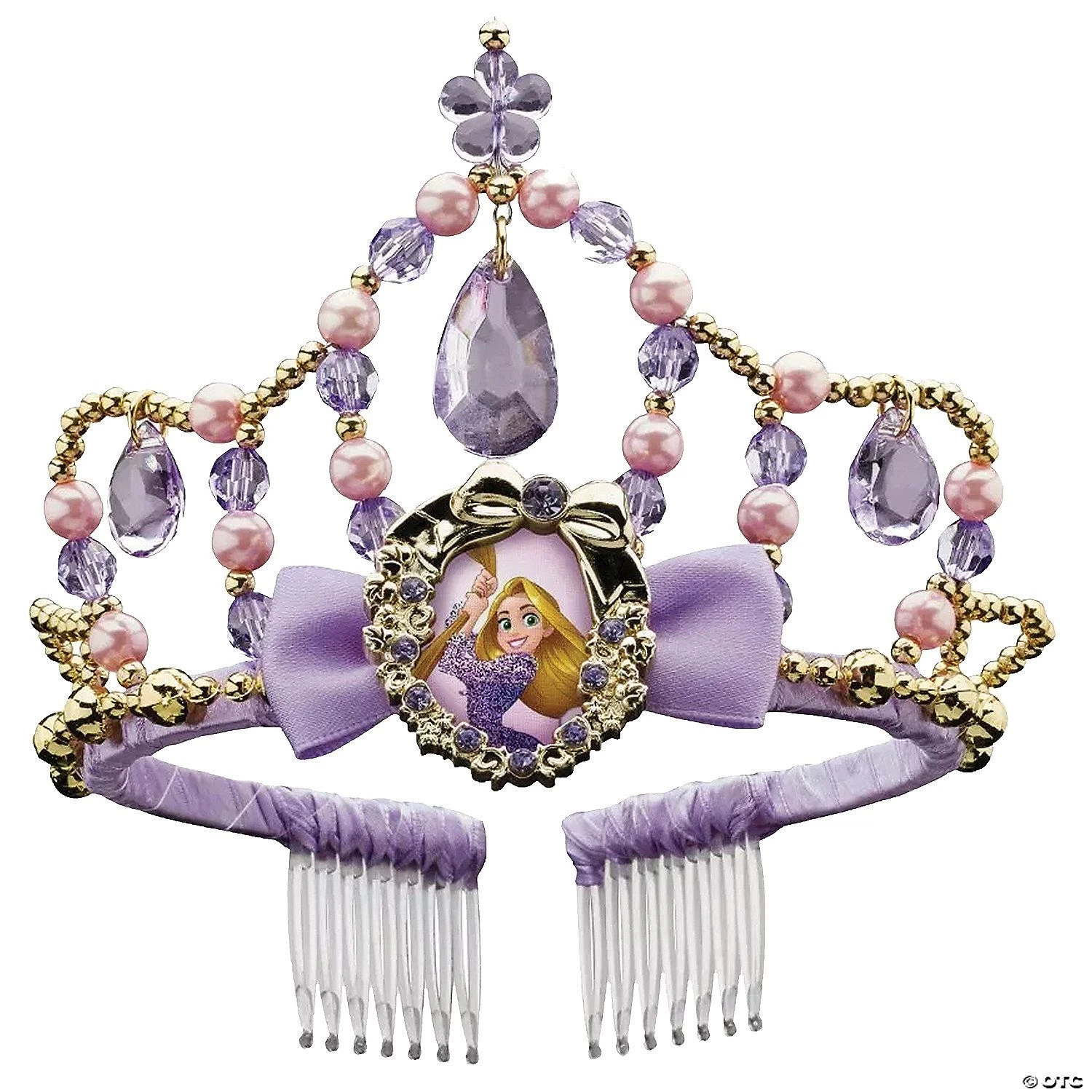 Lovely beaded tiara has dangling purple stones with satin covered hairband has 2 combs for a secure fit. Character cameo sits atop a satin bow. Fits all children.