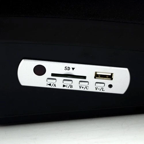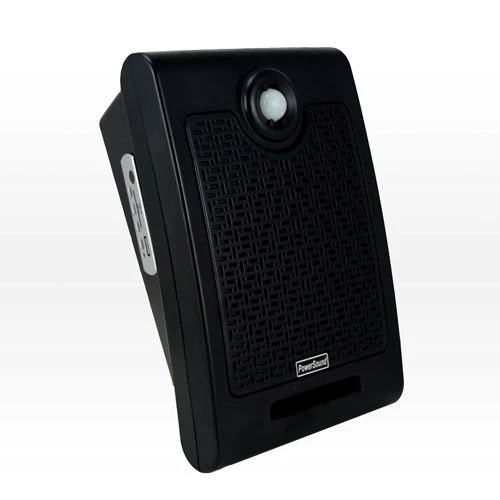 A powerful, 14-Watt speaker with a built-in motion sensor and MP3 player! Simply load any sound, or series of sounds, you want onto an SD card, put the SD card into the speaker and turn it on. You can also use a USB memory stick to upload your files into the internal memory.
