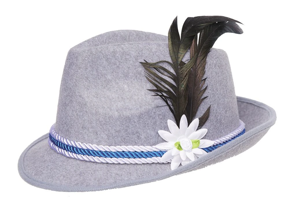 Yodelay-ee-oo! This Swiss-style hat will be the perfect final touch for any Alpine costume. Get this and your lederhosen will no longer be in a twist! Swiss Alpine hat with rope piping and feather accent. Green wih feathers. One size fits most adults.