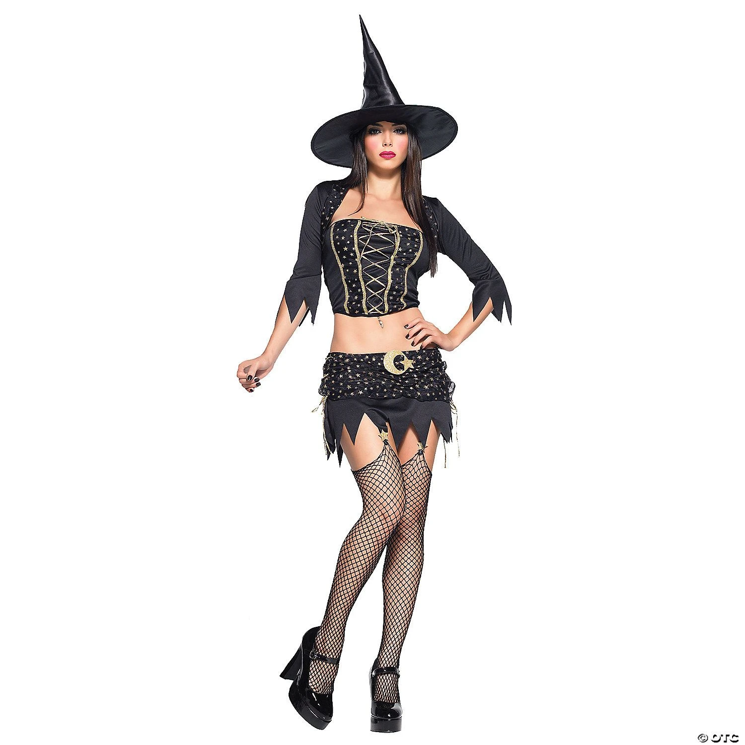 Jagged mini skirt with garters moon and star applique bustier shrug and hat. ADULT SIZE 12-14.