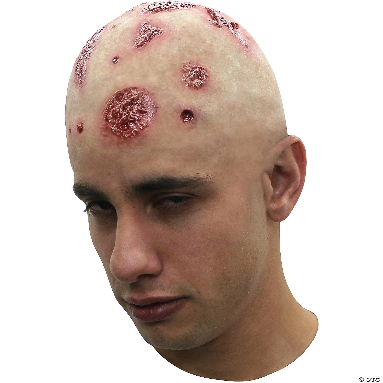 Putrid bald cap with sores and open wounds showing all over. Continue this horrible look onto your face and neck for a real sickly grotesque zombie look. One size fits most adults.
